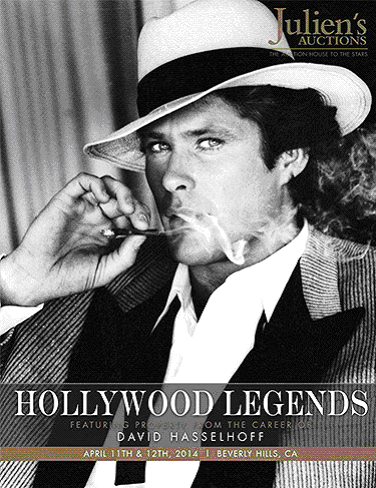 Im Rahmen ihrer jährlichen „Hollywood Legends“-Versteigerung präsentiert Julien’s Auctions in Beverly Hills, Kalifornien, am 11. und 12. April 2014 diesmal David Hasselhoffs Beiträge, darunter eine K.I.T.T.-Replika, die ihm von Fans geschenkt wurde (allerdings mit Flügeltüren), eine Baywatch-Jacke, seinen deutschen Bravo-Otto und vieles mehr – insgesamt über 100 Gegenstände. Die Auktionserlöse gehen an die „Starlight Foundation“, eine Wohltätigskeitsstiftung, die todkranken Kindern ihren letzten Wunsch erfüllt. Schon seit seiner Knight-Rider-Zeit unterstützt David diese Organisation. Viele der Auktionsartikel werden auch in der neuen amerikanischen TV-Serie „Celebrity Home Raiders“ zu sehen sein, die dort am 06. März 2014 auf dem Sender „Lifetime“ startet. Die Episode, in der der Moderator zusammen mit dem Hoff sein Haus und die darin befindlichen Erinnerungsstücke „plündert“, wird am 13. März 2014 gesendet. Näheres zur Auktion hier: http://www.juliensauctions.com/auctions/2014/hollywood-legends/index.html