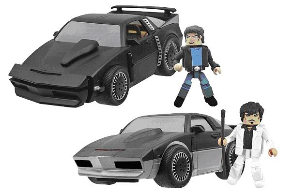 Ebenfalls während meines USA-Urlaubs entdeckte ich, dass es vom Minimates-Sammlerspielzeug nun auch KNIGHT-RIDER-Versionen gibt. Die Fahrzeuge sind ca. 11 cm groß; die Figuren die Hälfte. In jedes Fahrzeug passen zwei Figuren. Unverbindliche Preisempfehlung für ein Fahrzeug inkl. Figur liegt bei 14,99 $. Soweit mir bekannt, sind folgende Artikel erschienen: K.I.T.T.