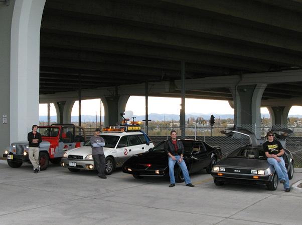 Ein Geländewagen aus JURASSIC PARK, eine neue Version des Ectomobils aus GHOSTUBSTERS, K.I.T.T. und die DeLorean-Zeitmaschine aus BACK TO THE FUTURE – alles Replikas mit ihren Besitzern, ein Bild, das ich im Internet gefunden habe. Vielleicht weiß ja jemand von Euch, wann und wo die Aufnahme entstanden ist…?