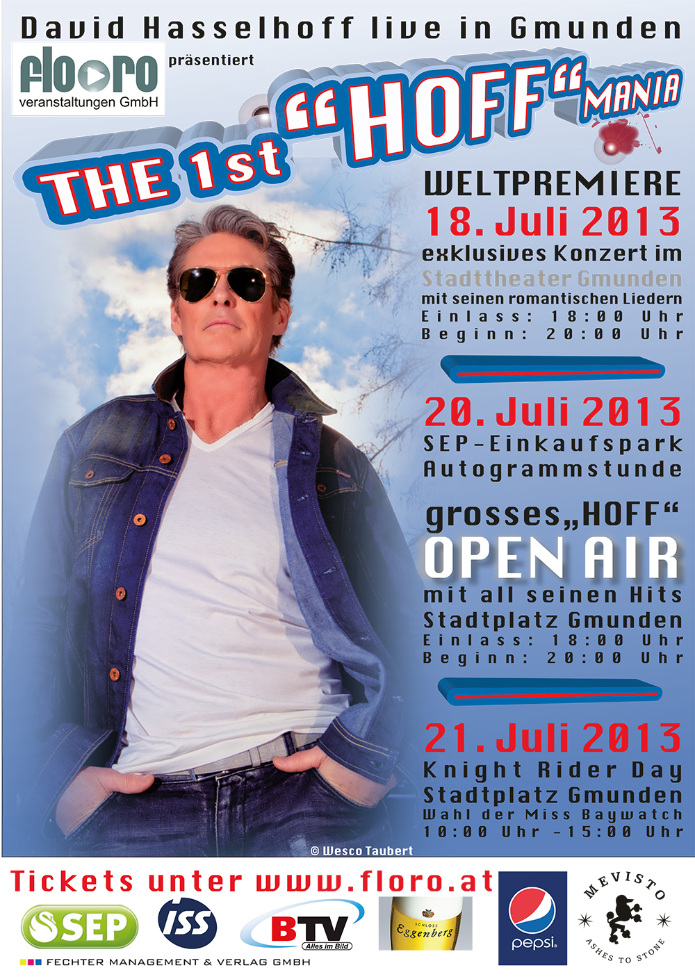 30.03.2014 - K.I.T.T. im Super Pursuit Mode 08.03.2014 - The Hoff versteigert persönliche Erinnerungsstücke 21.06.2013 - K.I.T.T. & David in London 10.03.2013 - THE HOFF IN CONCERT! 19.09.2012 - K.I.T.T. aus den Universal Studios Florida zu verkaufen! 02.07.2012 - Wer möchte noch eine echte K.I.T.T.-Replika? 14.10.2011 - K.I.T.T. auf dem Abstellgleis 14.10.2011 - KNIGHT RIDER als Minimates 23.07.2011 - Michael Knight trifft Wonder Woman 04.01.2011 - Aus für „The Hasselhoffs“